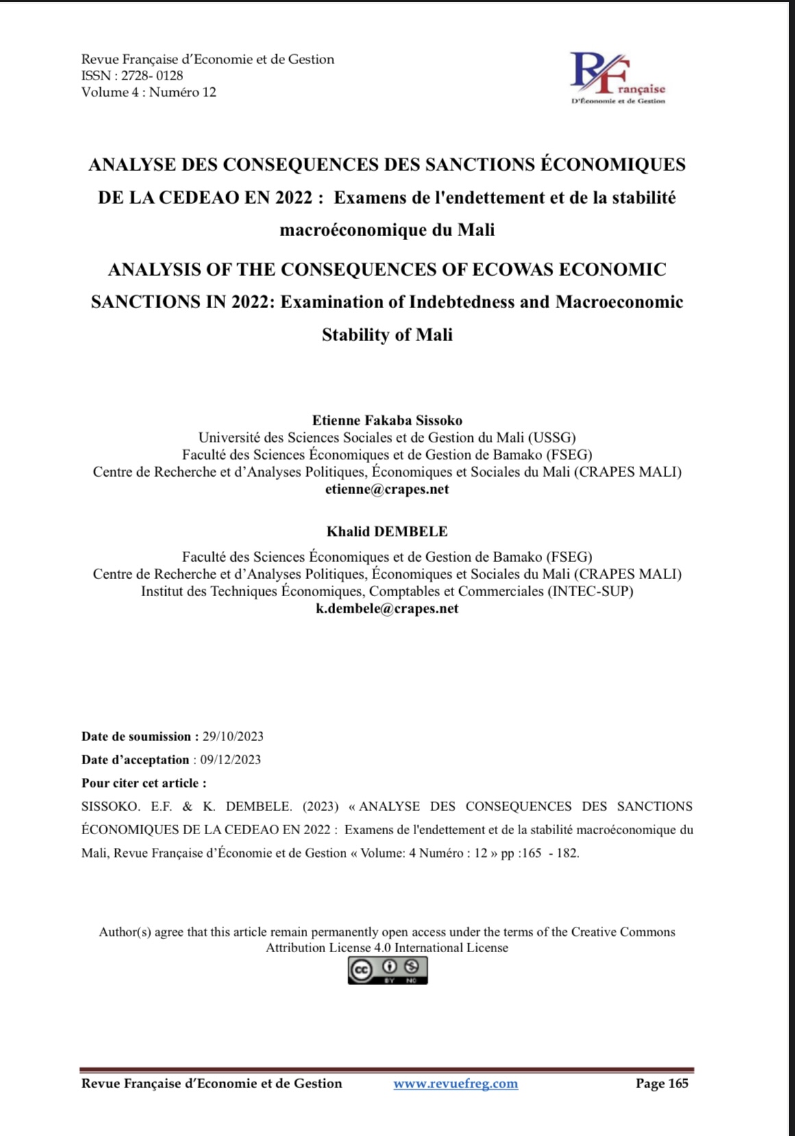 Dans un contexte de massification de l’enseignement supérieur et de tensions croissantes sur le marché du travail malien, cette étude analyse les trajectoires d’insertion professionnelle des diplômés de la FSEG/USSGB. En mobilisant une approche méthodologique mixte combinant un modèle logit multinomial et des entretiens semi-directifs, elle examine l’effet de variables académiques, sociales et expérientielles sur l’accès à l’emploi dans le domaine de formation, hors domaine ou dans d’autres formes d’activités.